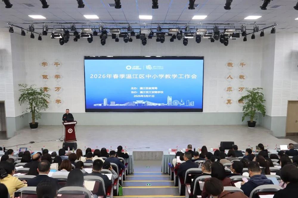 为进一步明确新学期教学工作方向、部署重点任务,3 月 31 日,温江区 2026 年春季中小学教学工作会在江安路学校召开。区教育局、区教科院相关负责人,各学科教研员及全区义务教育阶段学校校长、教学行政、教研组长、年级组长代表等 300 余人参会。